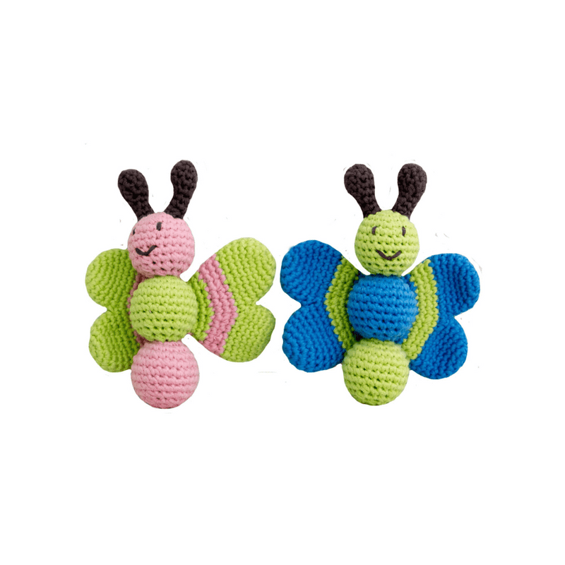 Soft, cheerful, and made for tiny hands — our Butterfly Baby Rattle brings gentle sound and endless smiles. Hand-crocheted from organic cotton yarn, it stimulates babies’ senses while soothing them with a soft, natural texture. Perfect as a first toy or thoughtful baby shower gift, this fluttery friend helps little ones discover the magic of touch and sound.